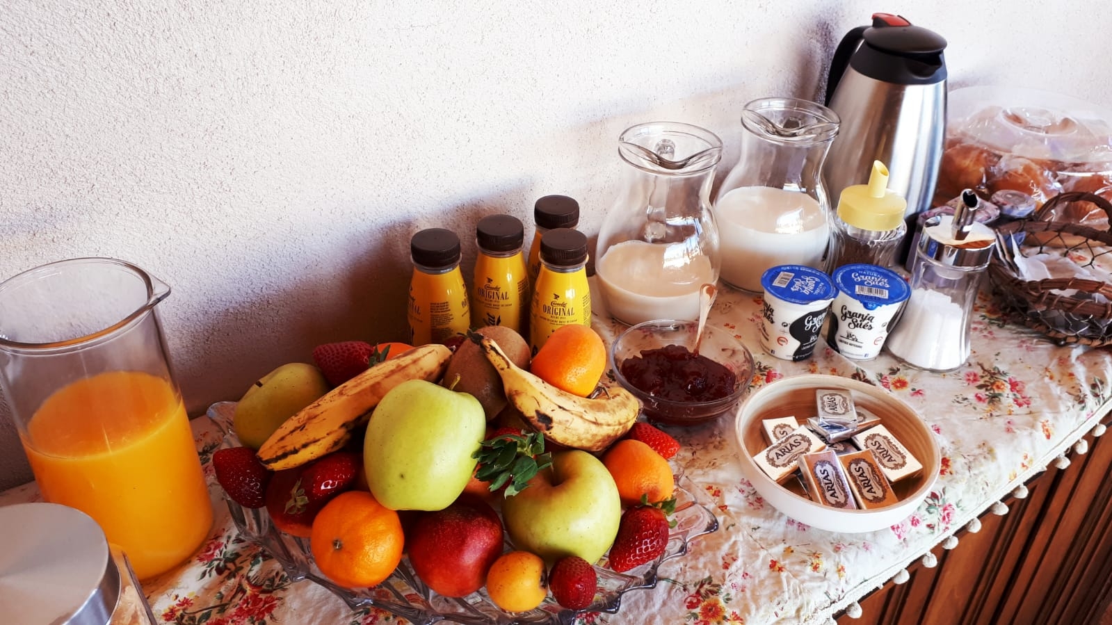 Nuestra apuesta por la calidad empieza con el desayuno. En la Masía de Montpedrós ofrecemos la oportunidad de compartir con nosotros un desayuno 100% de proximidad, km 0, que consiste en: